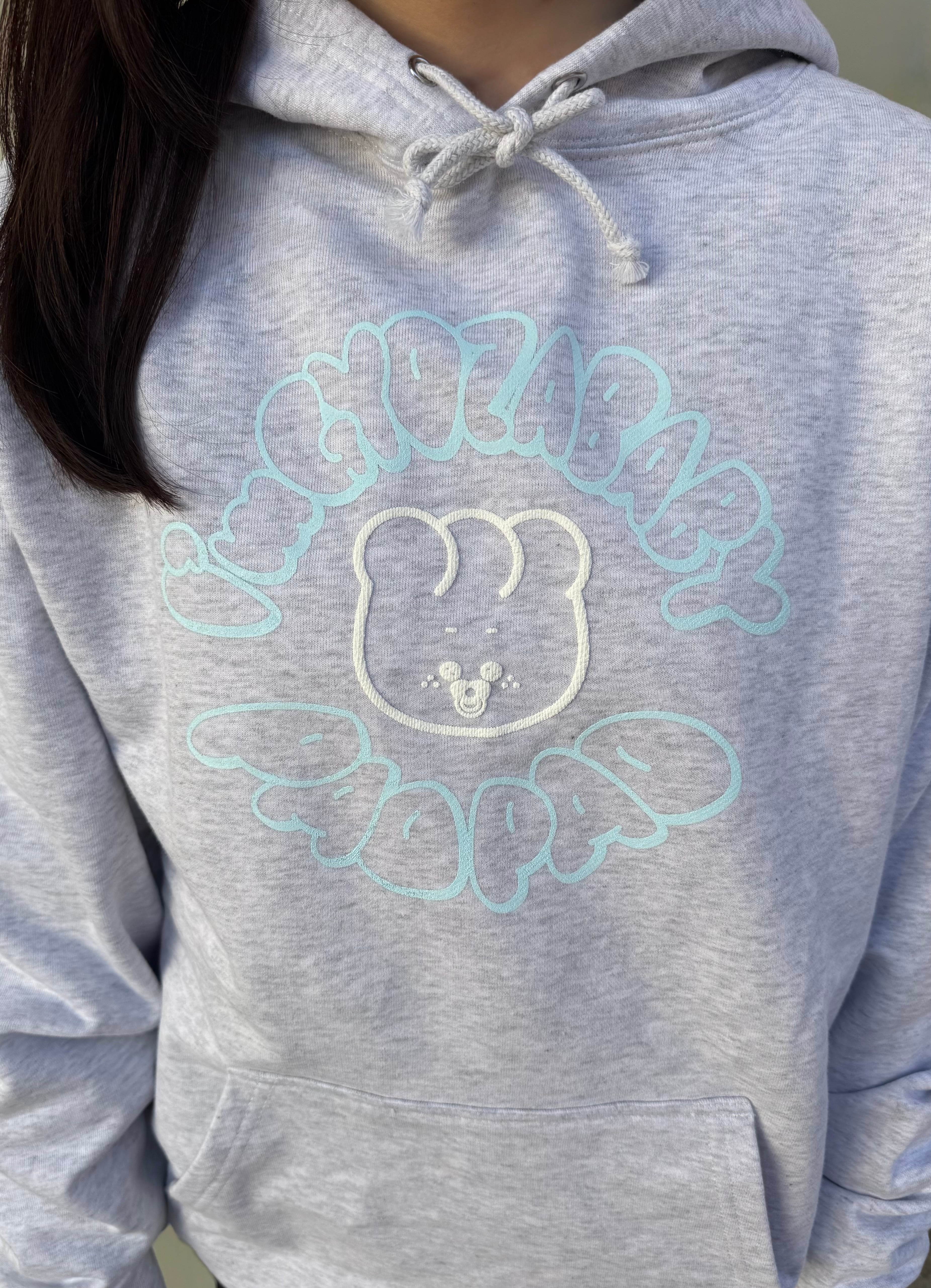 パフインクの特性上、洗濯や着用を重ねることで表面にひび割れが生じる場合がありますが、立体感のある風合いの経年変化としてお楽しみいただく仕様です。